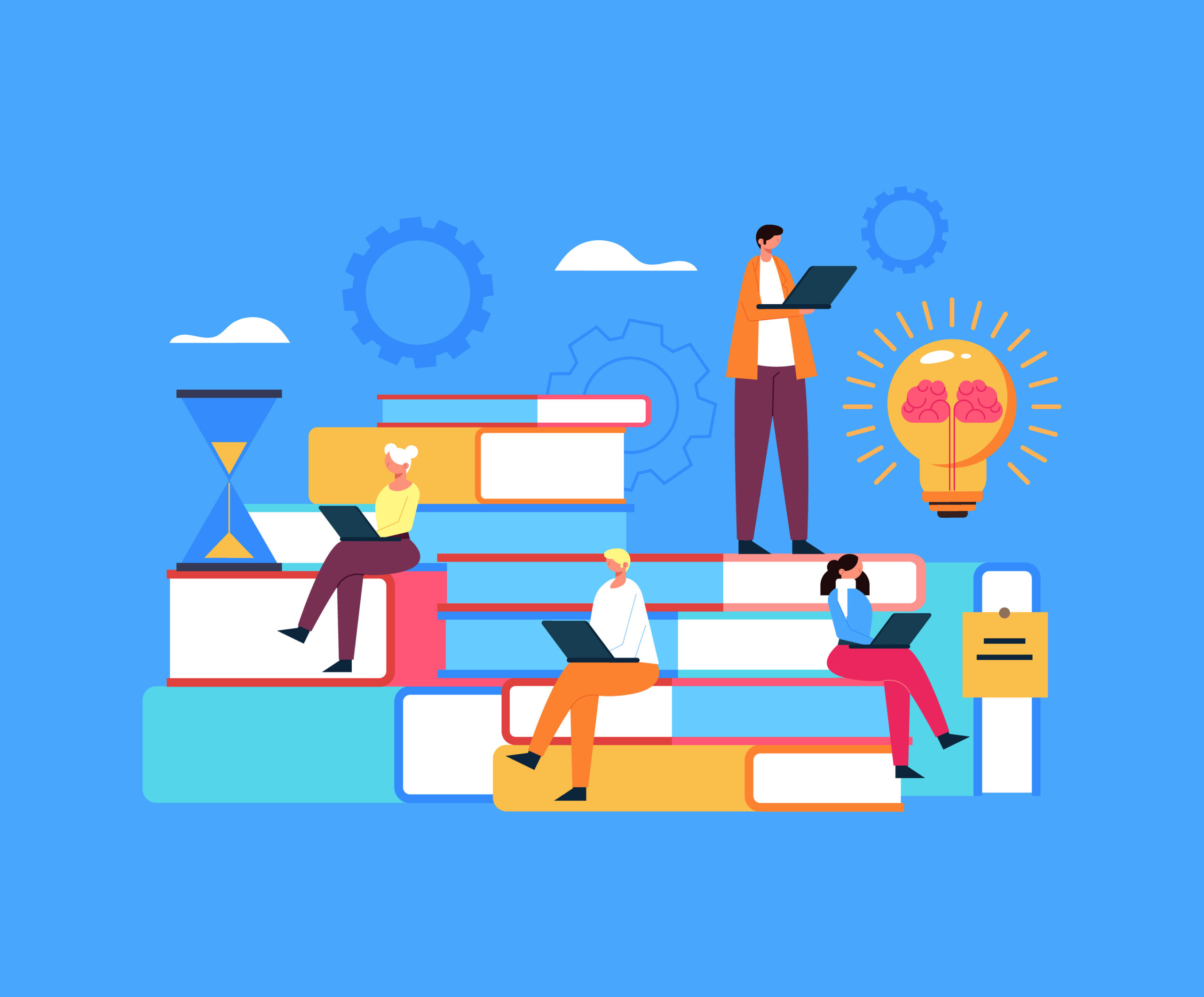 People students character reading book. Education learning concept. Vector flat graphic design